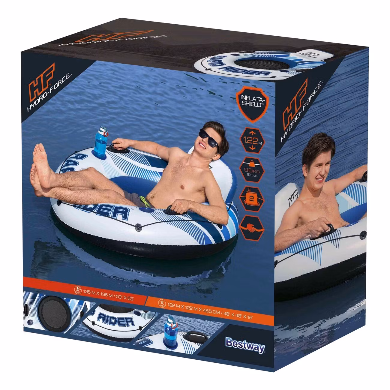 Bestway Hydro Force Badring innehåller sommarens härligaste badring. Flytringen är försedd med Inflata-Shield™ som gör den extra stark och skyddar mot punktering. Den har även 2 inbyggda kopphållare och ett rejält ryggstöd. Repet på sidorna gör det enkelt att hantera den i vattnet och kan binda fast i andra flytringar.