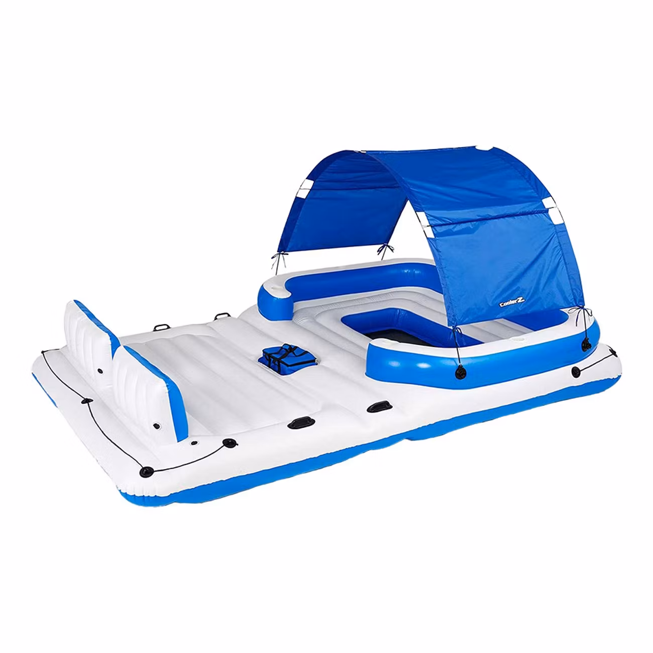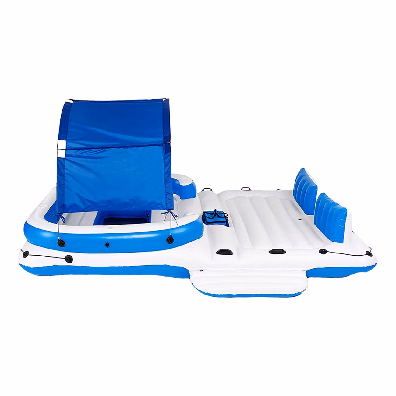 Bestway Tropical Breeze Uppblåsbar Flotte är varje sommarälskares våta dröm. Flotten har plats för upp till 6 personer och är utrustad med ryggstöd, inbyggda mugghållare och en inbyggd kylväska där du kan hålla din dryck på kylning. När det blir för varmt kan du ta plats under solskyddet!