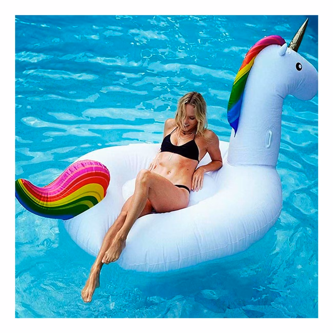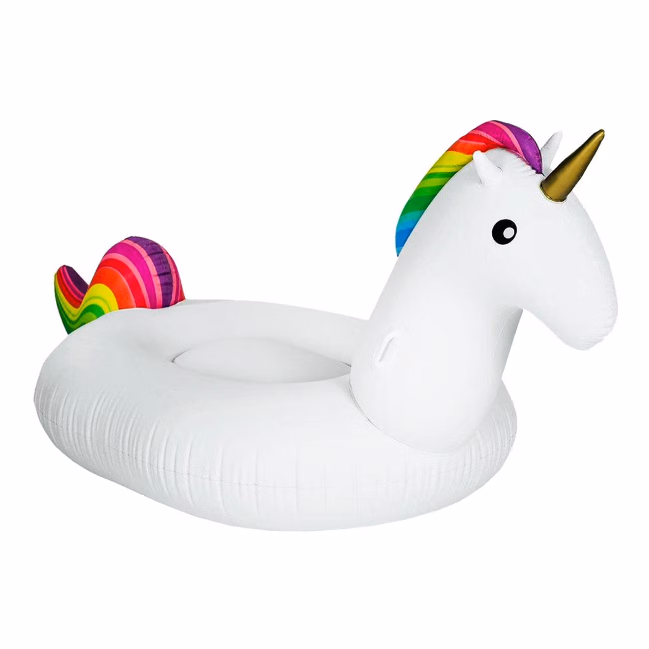 Bli kungen i poolen med vår mäktiga Uppblåsbar Enhörning Badring! Vi garanterar en mytologisk upplevelse utan dess like när du ligger och jäser tillsammans med den här fantastiska enhörningen i vattnet. På halsen finns två praktiska handtag ifall enhörningen tar sats och galopperar iväg i vattnet där du kan hålla så du inte flyger av. Man vet ju aldrig vad den kan få för sig. När den lugnat ner sig kan du istället mysa ner dig i mitten och bara njuta av den varma solen och ditt supercoola sällskap.