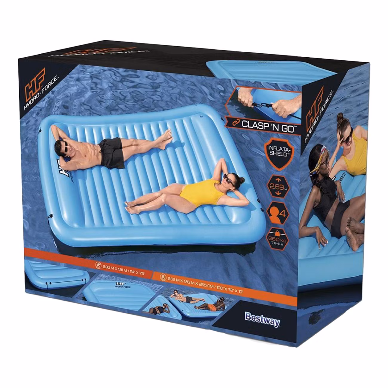 Hydro-Force Badflotte är en flytande badflotte som rymmer fyra personer. Bestway Hydro-Force Sun Soaker passar perfekt till sommarens strand-och poolhäng. Repen på sidan gör det möjligt att koppla ihop flera flottar i varandra.