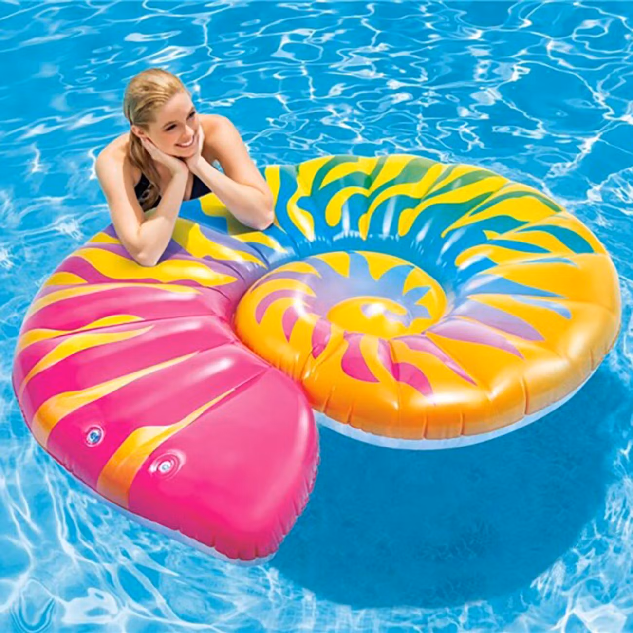 Hur kopplar man enklast av på semestern egentligen? Möjligtvis i poolen med en bra bok, guppandes på en färgglad snäcka! Den här badmadrassen är ett måste inför sommarens poolpartyn.