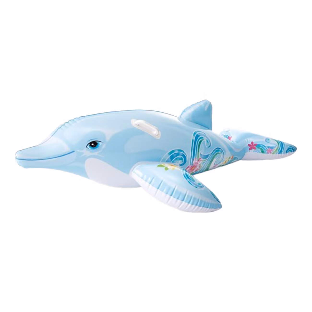 Intex Delfin Badmadrass innehåller en badmadrass som är utformad som en snäll och gullig delfin. Delfinen är utrustad med två handtag som gör det enkelt att hålla sig kvar på madrassen. Den ultimata vattenleksaken att ta med till barnet när det är dags för en heldag vid poolen eller havet!