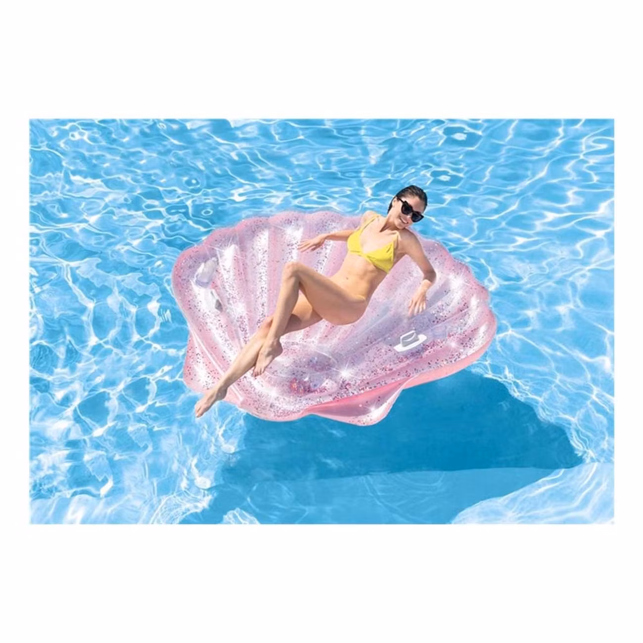 Intex Uppblåsbar Badmadrass Snäckskal är en fräsch badmadrass i form av ett rosa snäckskal att flyta omkring i. Madrassen är tillverkad i slitstarkt PVC-material och mäter 178 x 165 x 24 cm stor. Madrassen blåser du enkelt upp med en handpump eller med en batteridriven luftpump från E-Flater. Utifall badmadrassen skulle börja pysa av någon anledning - använd reparationskitet som medföljer.