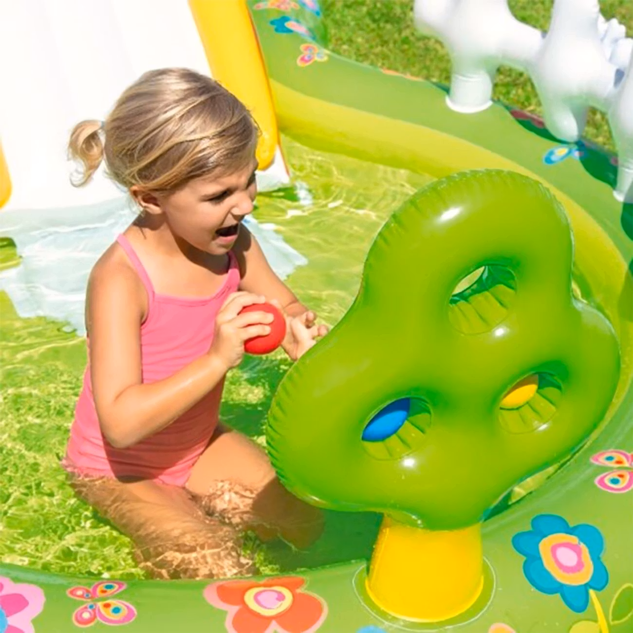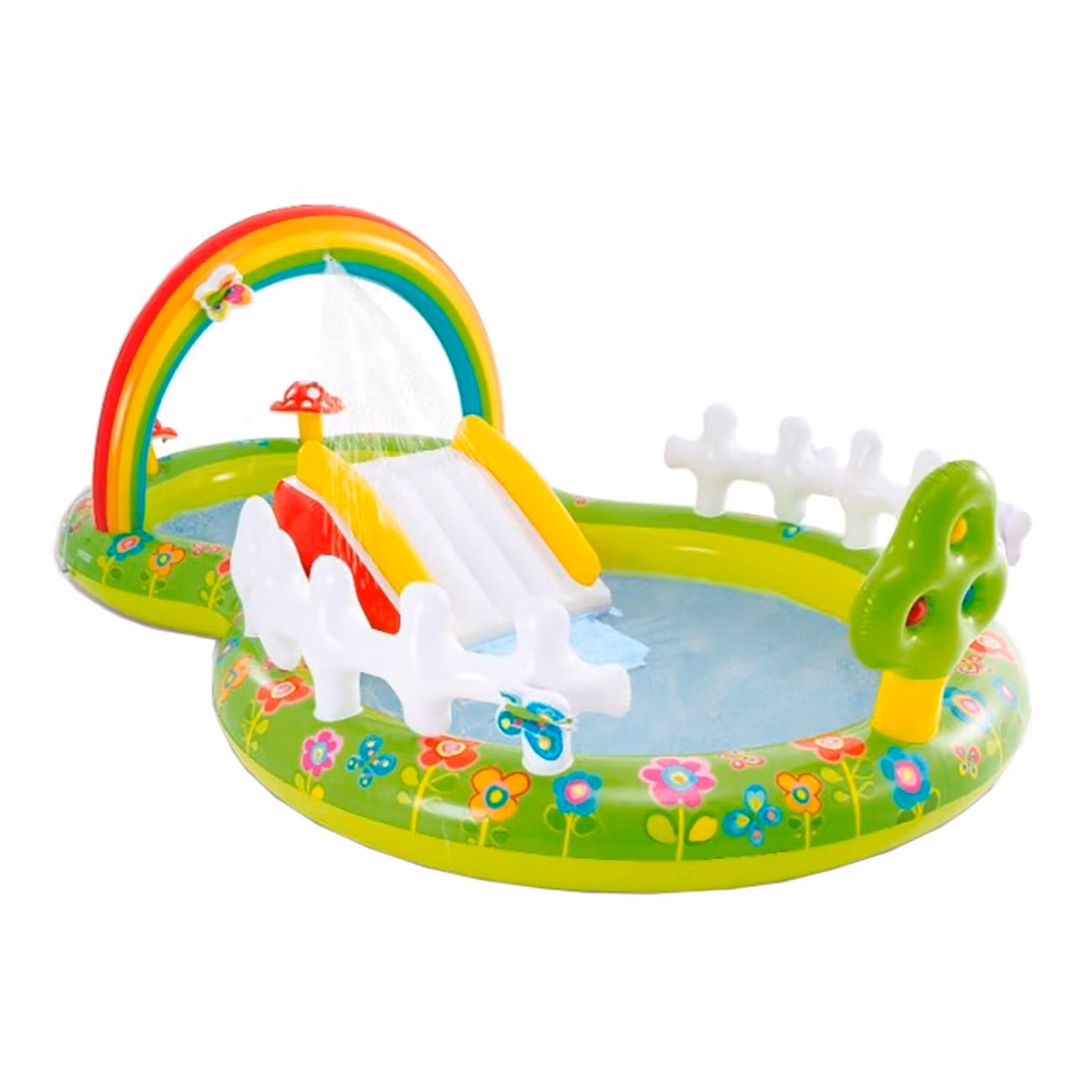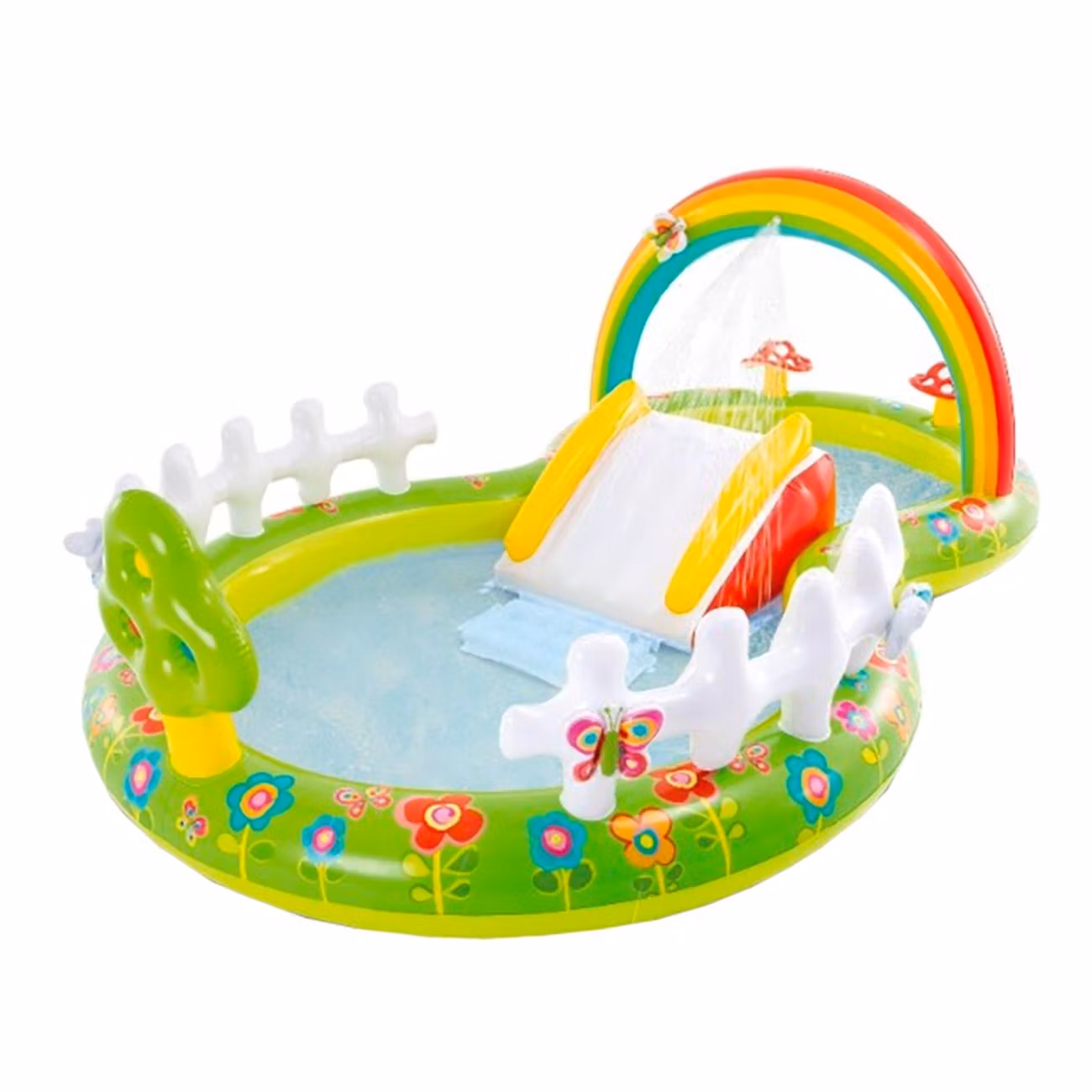 Alla barns största dröm - ett eget vattenland i trädgården! Den här fantasifulla kreationen kommer garanterat bli sommarlovets höjdpunkt när temperaturen klättrar uppåt och ett svalkande bad är på sin plats. Koppla in trädgårdsslangen i parken och bevittna hur regnbågen vattnar hela poolen!