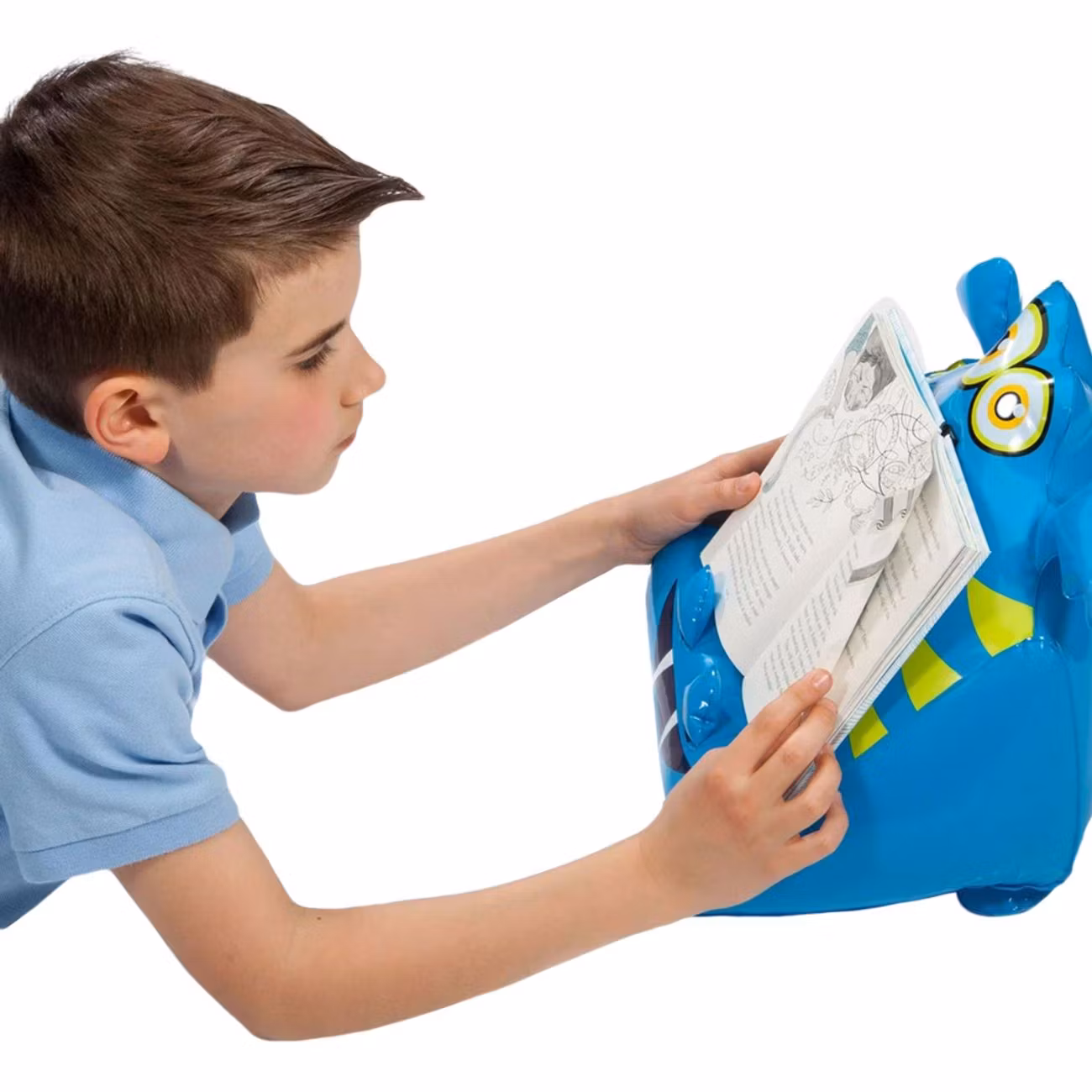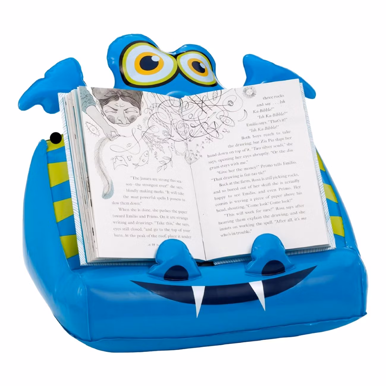 Uppblåsbar Bokhållare Monster Blå är en uppblåsbar bokhållare som håller upp din bok eller Ipad. Passar perfekt att ha med till stranden, när du reser eller hemma i soffan!