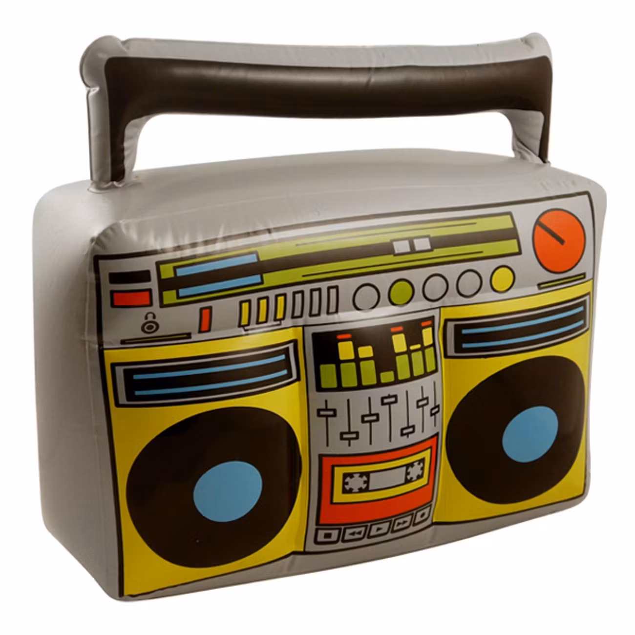 Uppblåsbar Boombox i äkta 80-talsanda som ser precis ut som bergsprängarna gjorde på den tiden, vilket gör den till det ultimata tillbehöret på maskeradfesten!