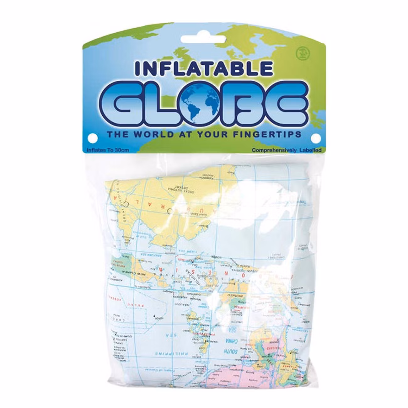 Uppblåsbar Jordglob är en helt och hållet uppblåsbar jordglob som är tillverkad i PVC och mäter 30 cm när den fylls med luft. Produkten säljs styckvis.