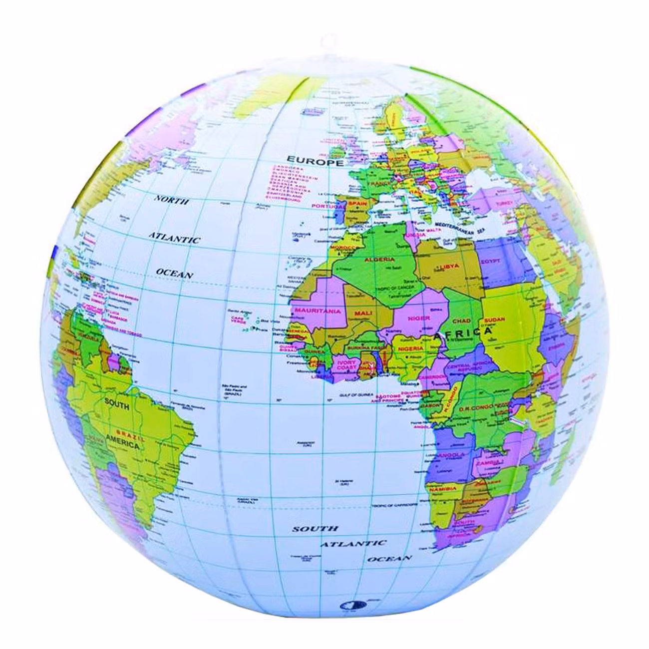 En badboll som kombinerar skoj med matnyttig information om världens länder, nej nu har vi då hört allt! Ta med bollen till nästa poolparty och skryt om dina geografiska kunskaper samtidigt som du smashar en fullpoängare till ditt lag i vattenpolo!