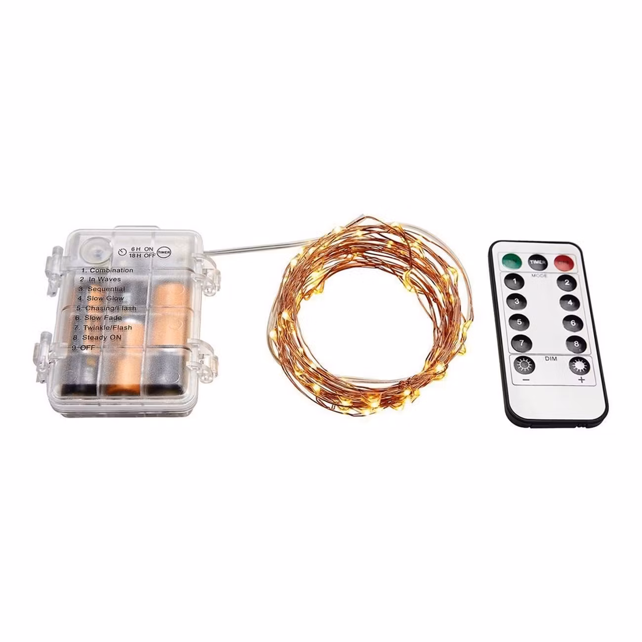 Ljusslinga Fairy Light drivs av 3 stycken AA-batterier (medföljer ej) och ger ifrån sig ett varmvitt sken. Du kontrollerar slingan med den medföljande fjärrkontrollen.