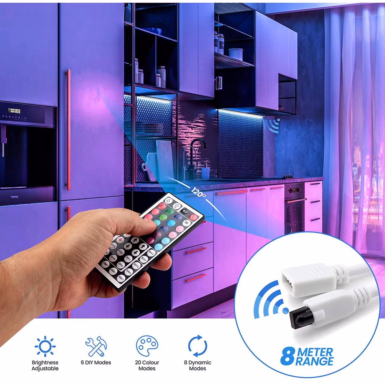 Drömmer du om en ungkarlslya fylld av sexig belysning runt TV-apparater, sängar och taklister, eller vill du ha en riktigt häftig gaminghörna där i princip allt lyser i LED? Då är det en sån här LED-ljusslinga du behöver! Med den självhäftande baksidan fäster slingan lätt på alla slags material, och du styr sedan ljuset med hjälp av en smart fjärrkontroll. Välj mellan längderna 5, 10 och 20 meter.